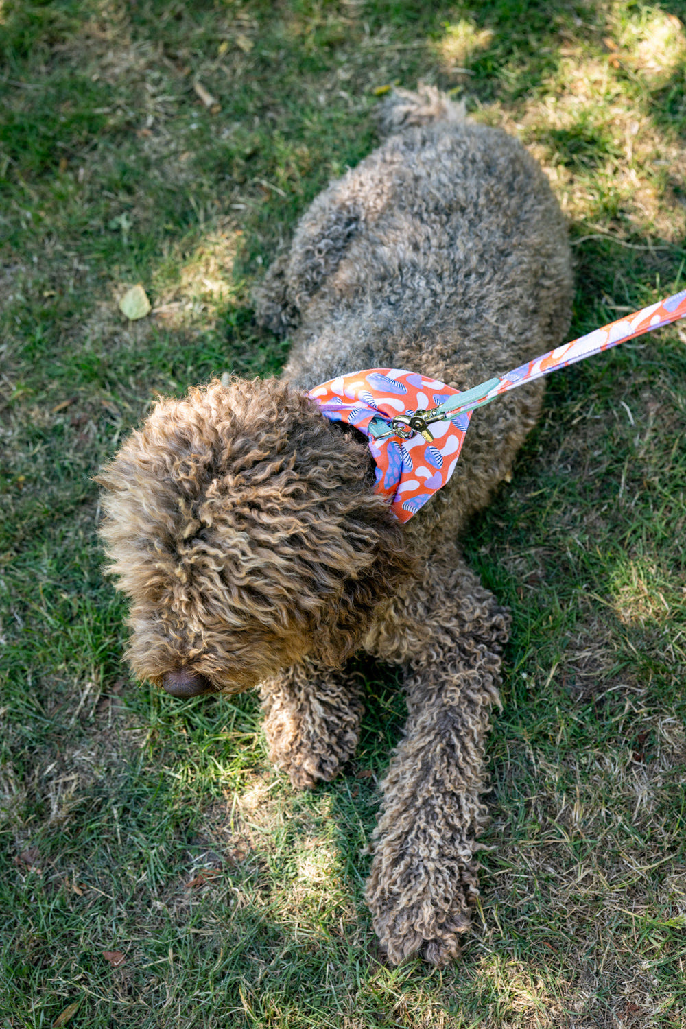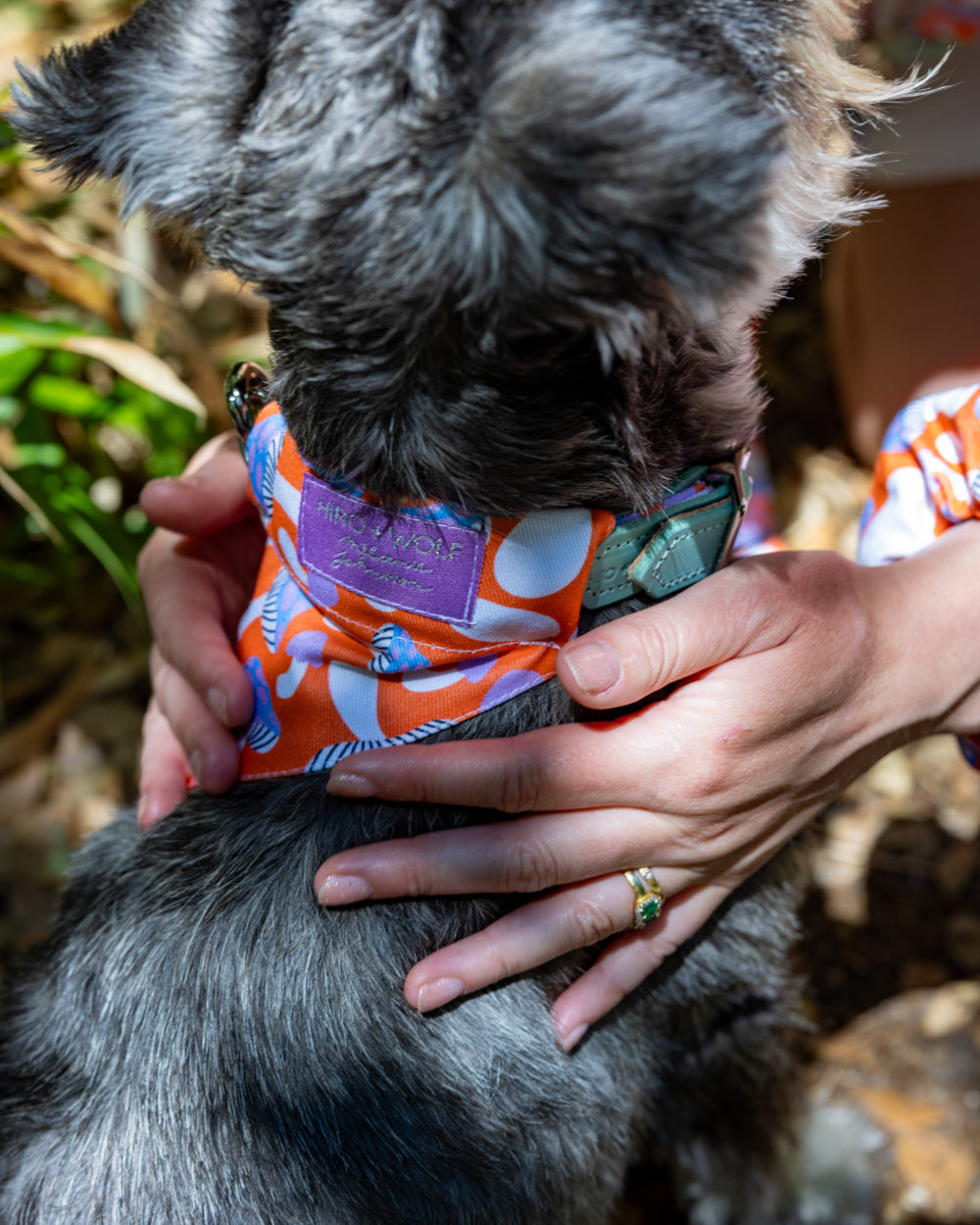 Hipster hounds go mutts for extra hooman attention. That’s why this slip over the collar dog bandana is a must-have pet accessory. Our easy-to-use dog bandanas are sure to turn heads, perfectly fitting both country doggos or urban pooches. Handcrafted in our original Psychedelic Garden fabric, express your pawsome pup’s personality on your walks.