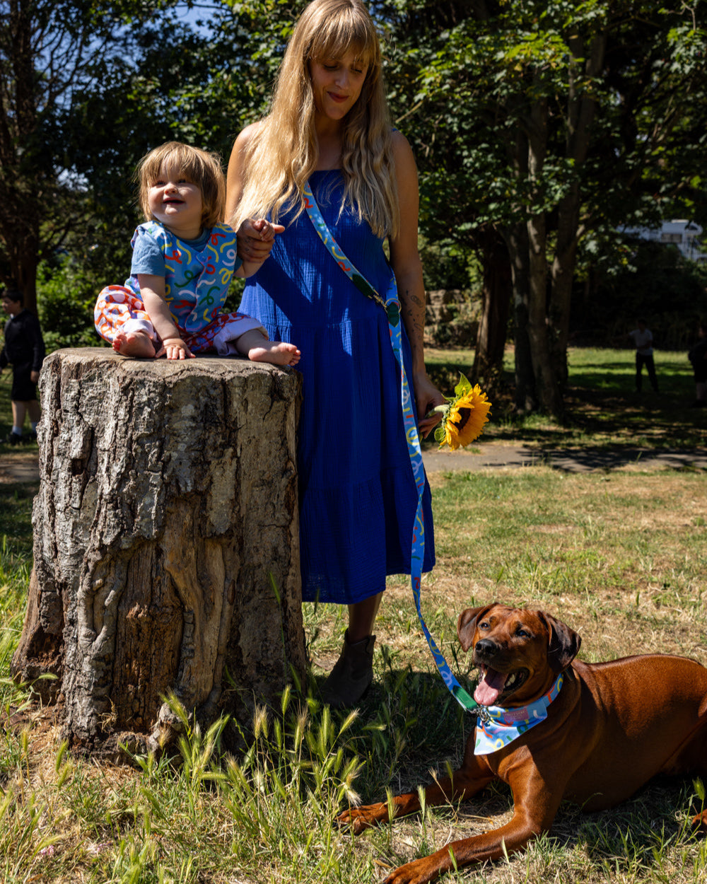 ABOUT THE PRINT: Inspired by the magical dance of falling leaves, this colourful print is perfect for playful puppies and kids alike. Part of our collaboration with local illustrator Mélanie Johnsson, this design features abstract wiggly lines in cheerful shades of lilac, yellow, green, orange and white against a bold blue background.