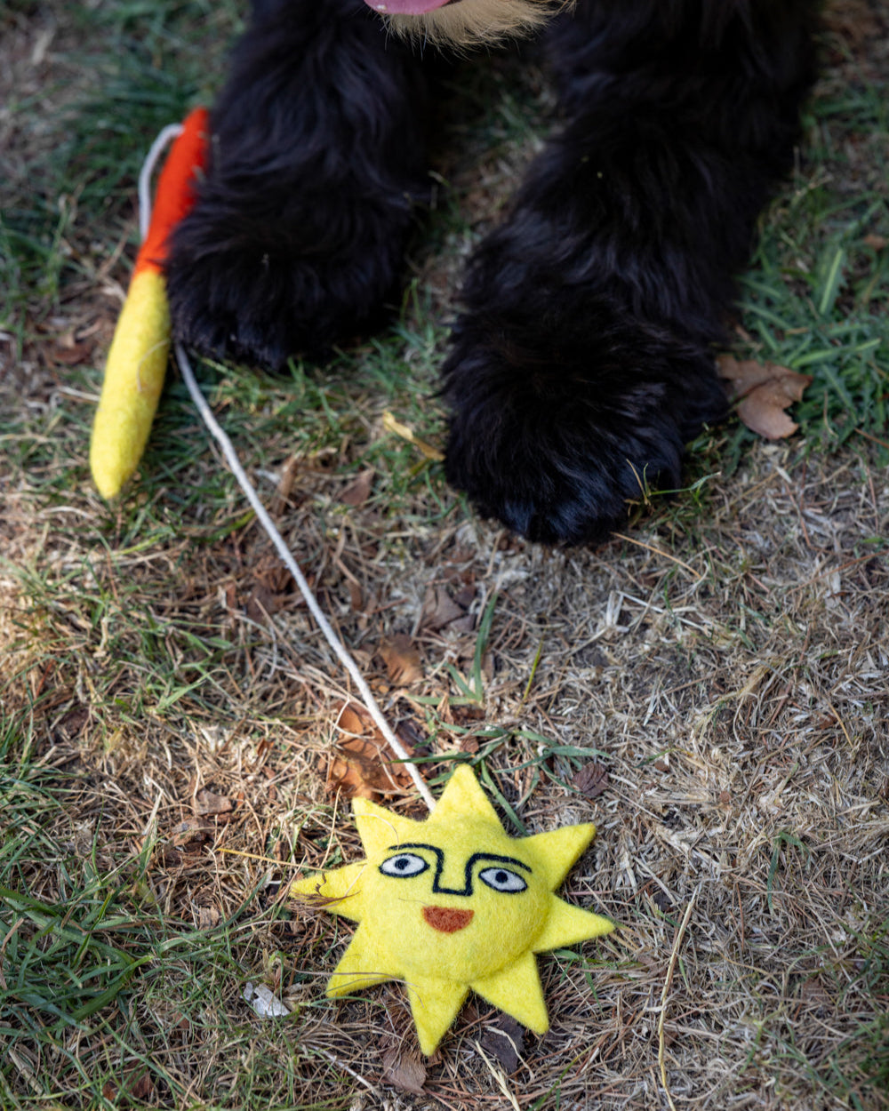 Bring a little sunshine to playtime with our Sunny Days Teaser Cat Toy - part of our joyful collaboration with local illustrator Melanie Johnsson. This eco-friendly fishing-rod cat toy is lovingly handmade in Nepal using 100% pure New Zealand wool, offering a safer, sustainable alternative to plastic cat toys.