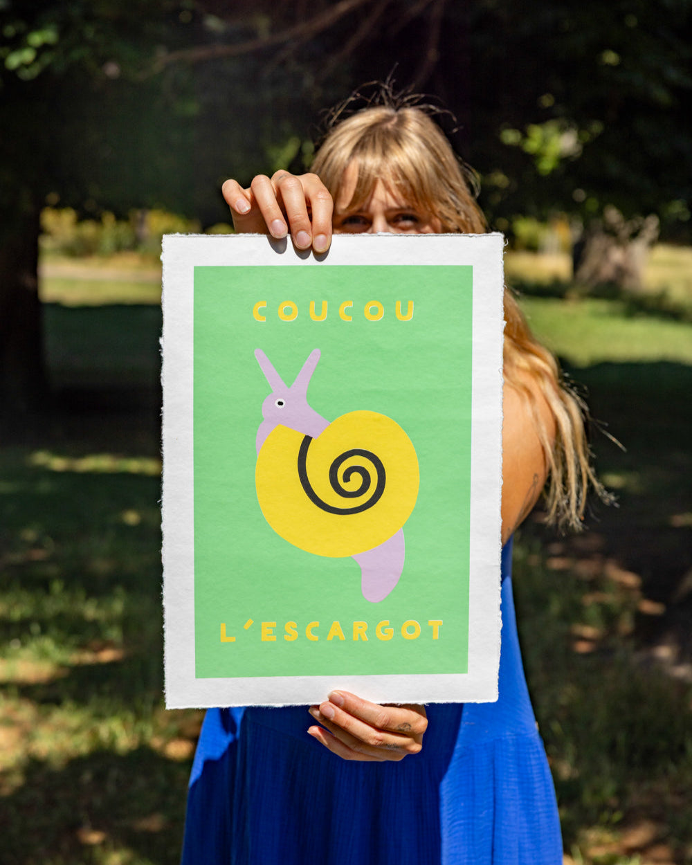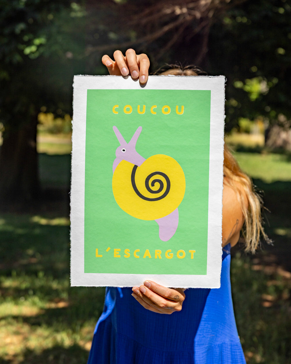 Say “hello” to a dash of whimsy with this cheerful A3 art print by Mélanie Johnsson, featuring a bright and friendly snail paired with the French greeting “CouCou L’Escargot.” Playful and modern, this artwork is perfect for children’s rooms, nurseries, or any corner that needs a little fun.