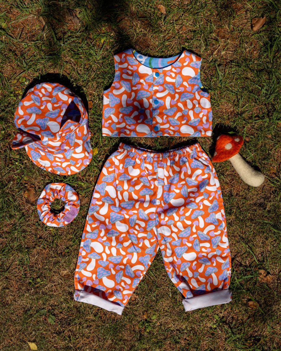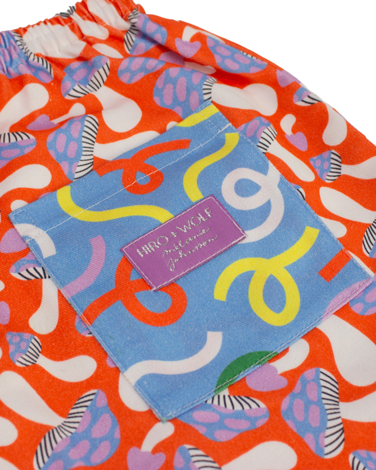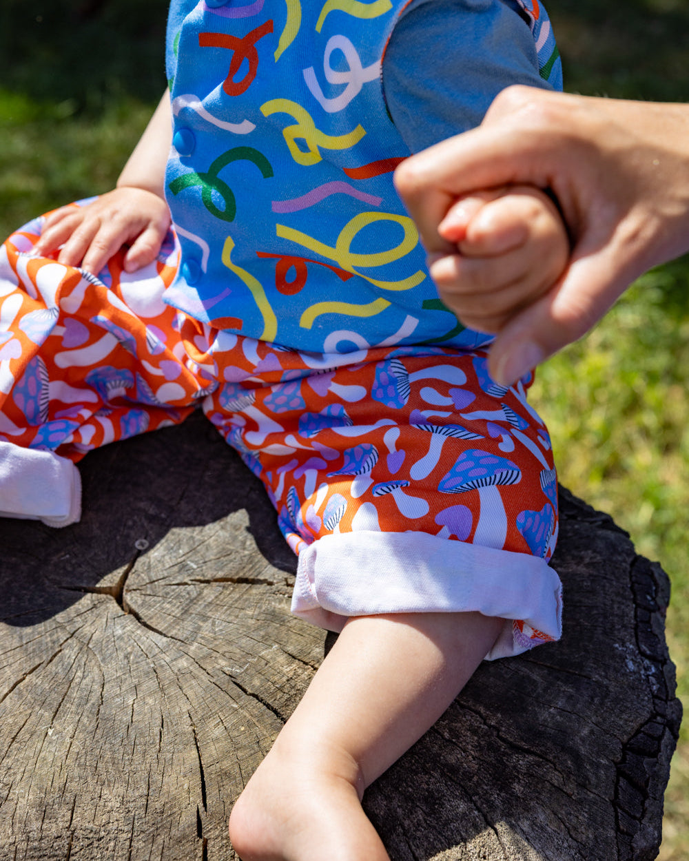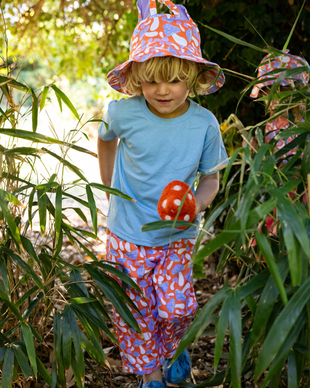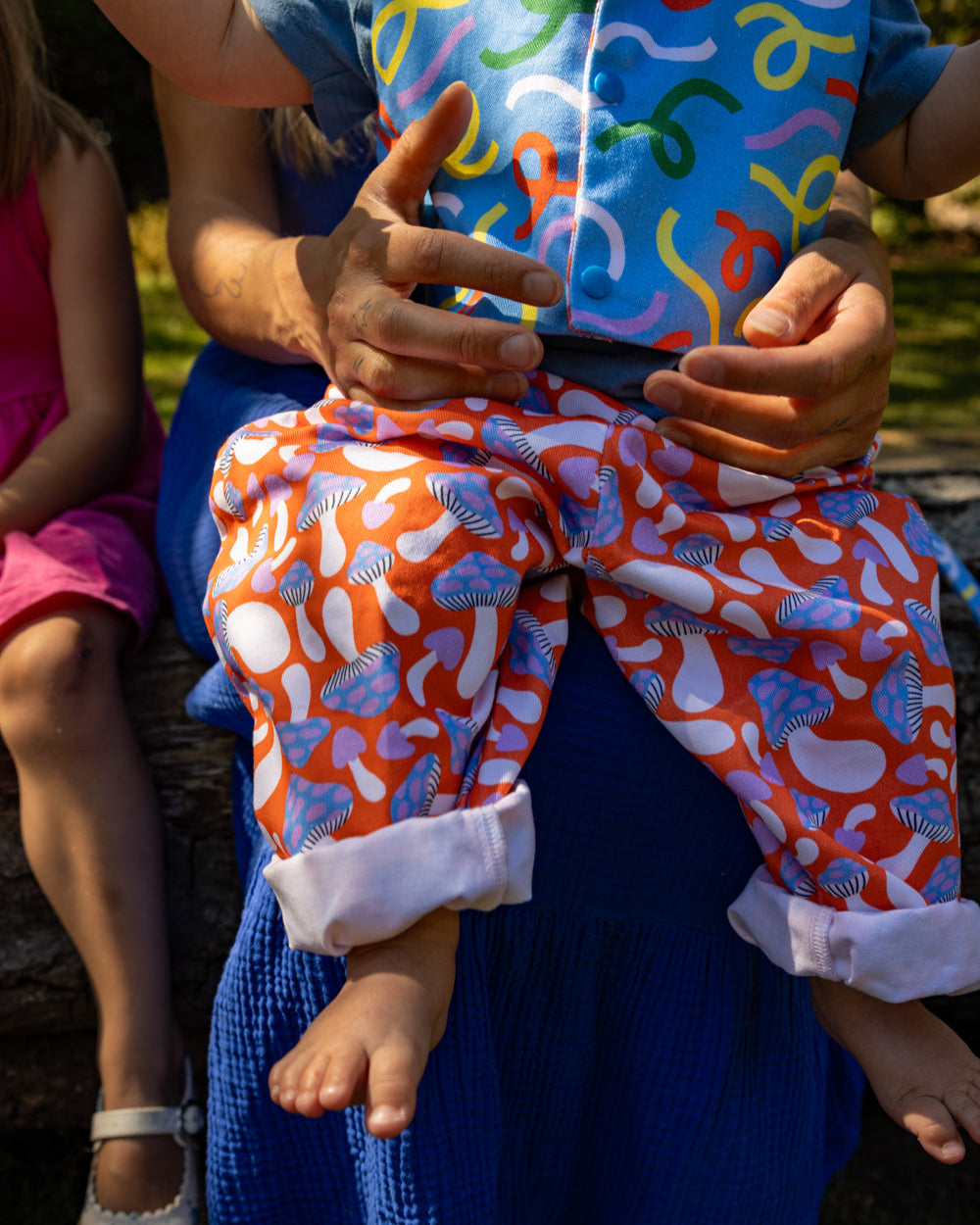 Let their personality shine in our playful Magical Mushrooms print Organic cotton trousers for kids. Designed by local illustrator Mélanie Johnsson, these colourful trousers are part of our Psychedelic Garden collection.