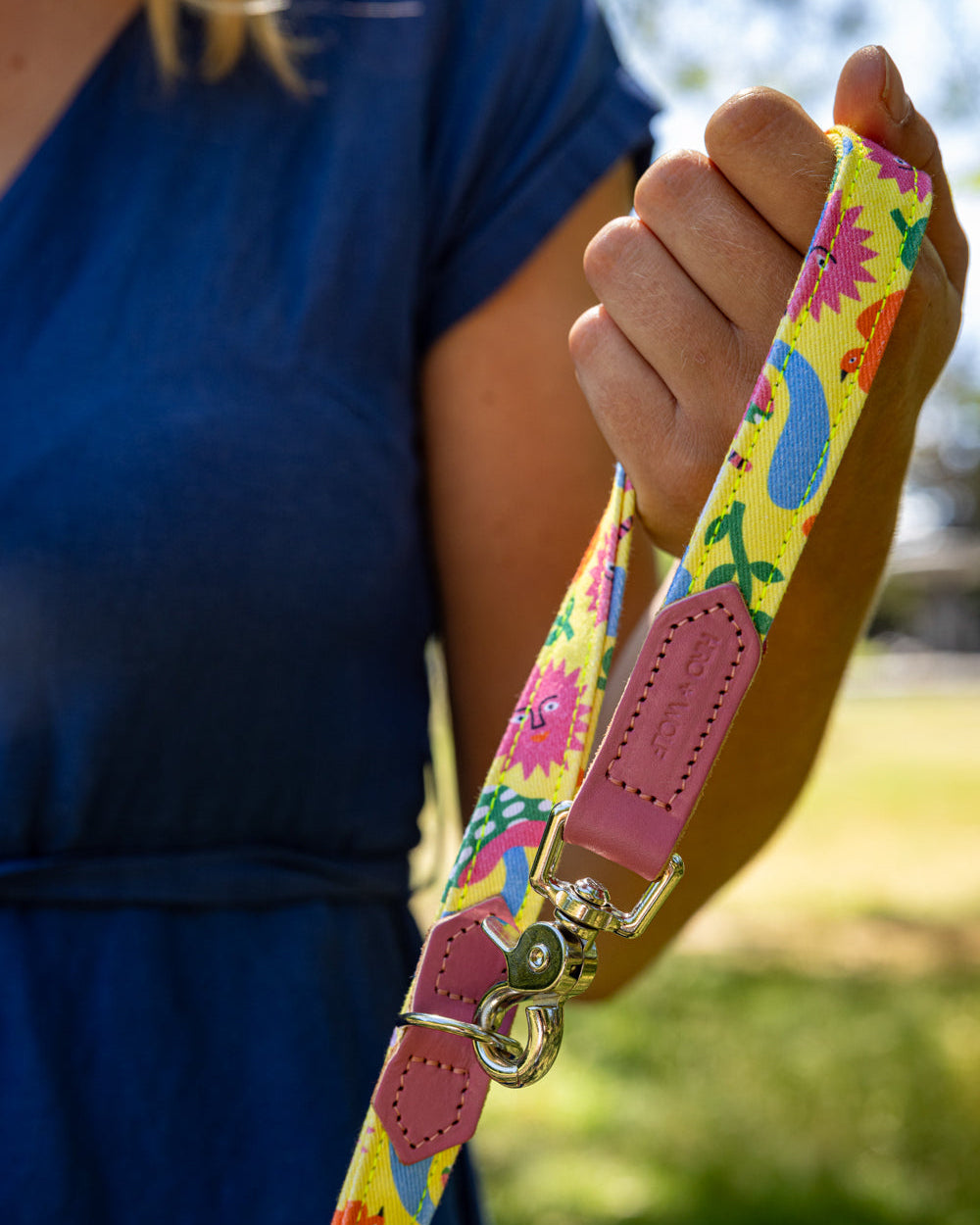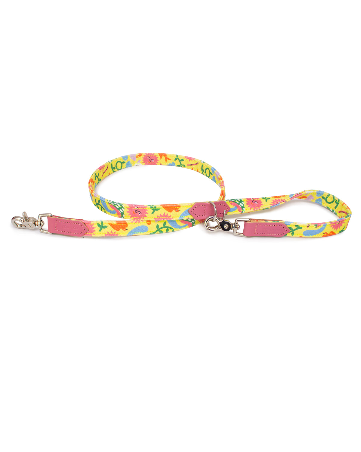 Our go-to dog lead for travel, coffee dates, and lunchtime socials, Hiro + Wolf’s Psychedelic Garden café lead is a must-have in every situation. This multi-clip lead is a dependable companion, designed to make your outings easy and carefree. Simply hook the handle around your chair, table leg, bag, or pram, for a no-fuss, hands-free experience. Have safe and secure control without the need to hold, stand, or sit on your dog’s lead in public spaces.