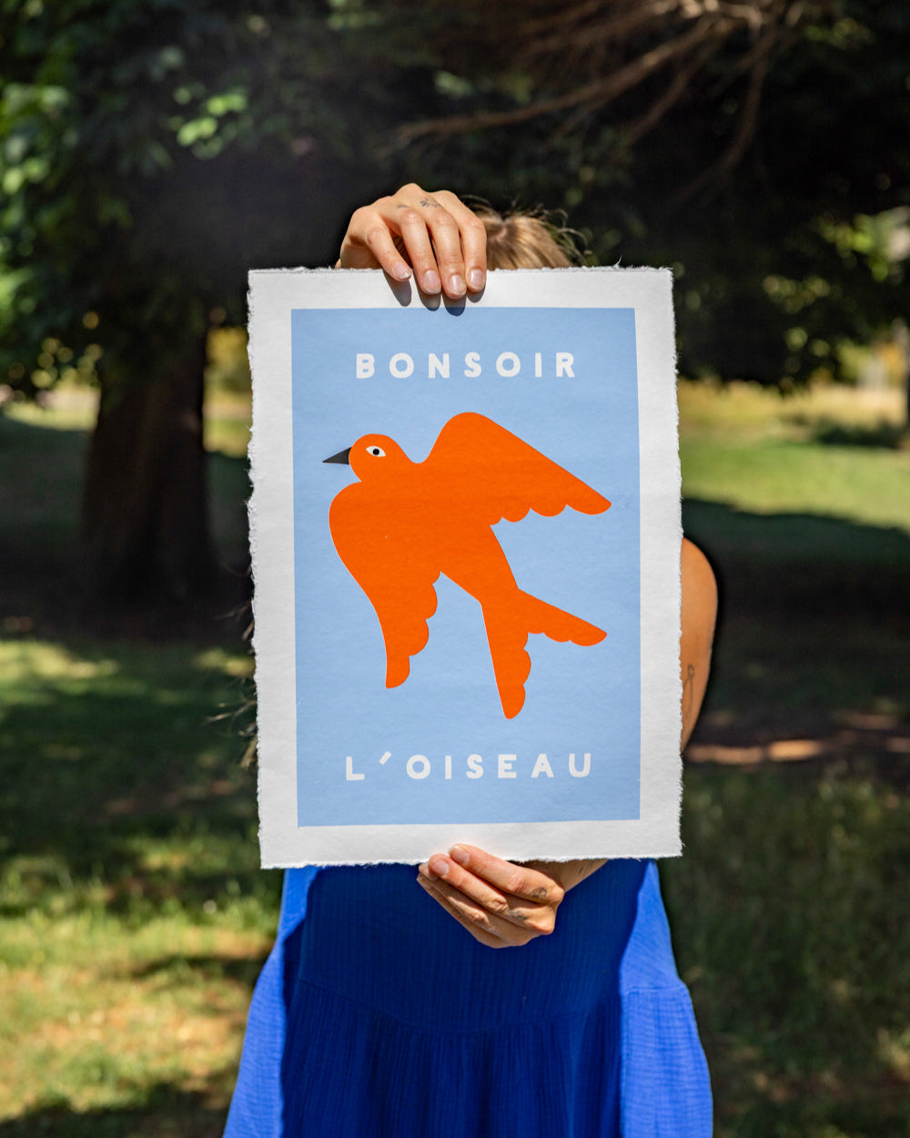 Add a touch of playful charm to your space with this delightful limited edition A3 art print by Mélanie Johnsson. Featuring a bold orange bird in flight and the French words “Bonsoir L’Oiseau.”