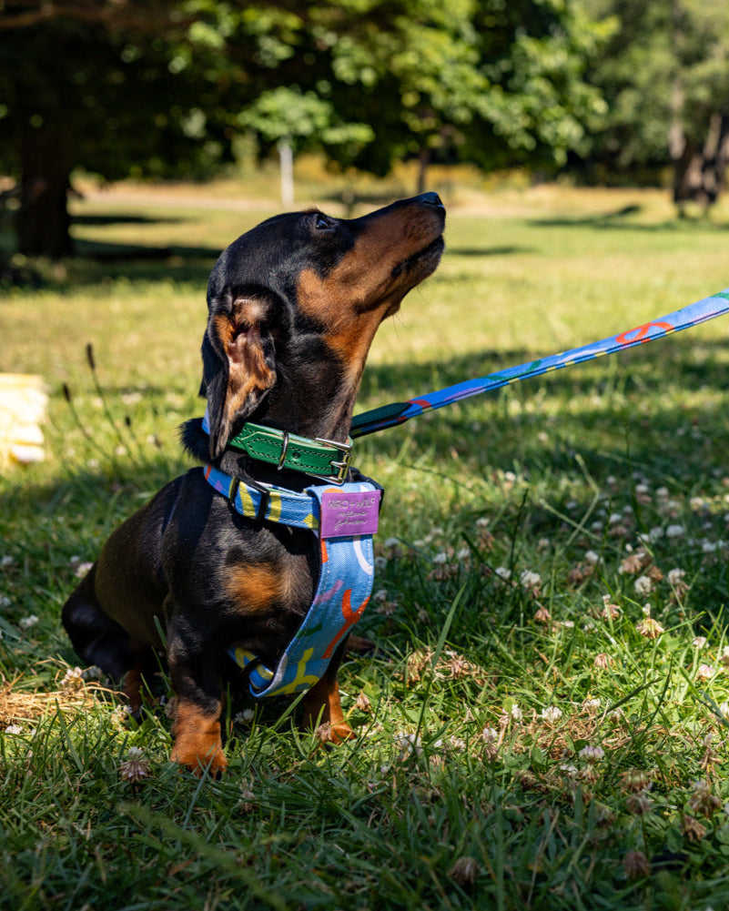 Introducing our Dancing Leaves deluxe dog harness! This step-in dog harness is fully adjustable for the perfect fit. Designer dog harnesses don’t have to be plain. Our iconic fabric is bound to bring attention to your furry best friend. The easy to clean material is soft and comfortable for your pup, allowing every adventure to be carefree.