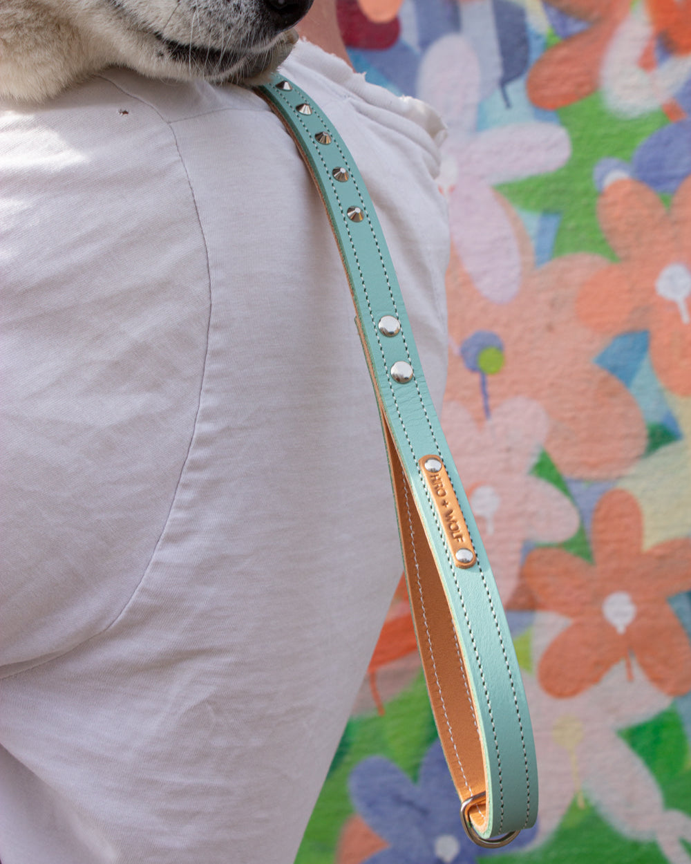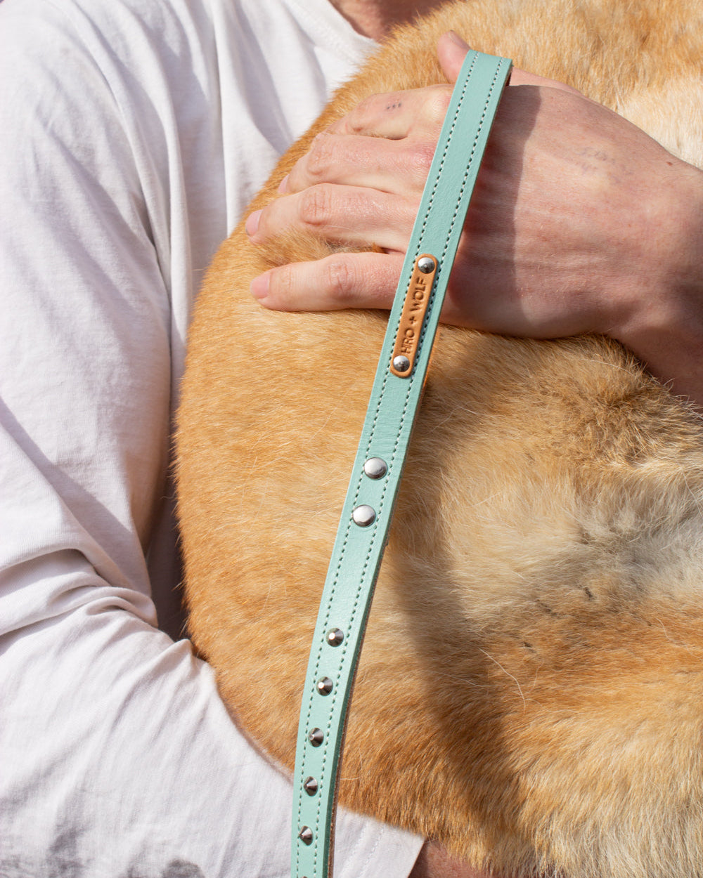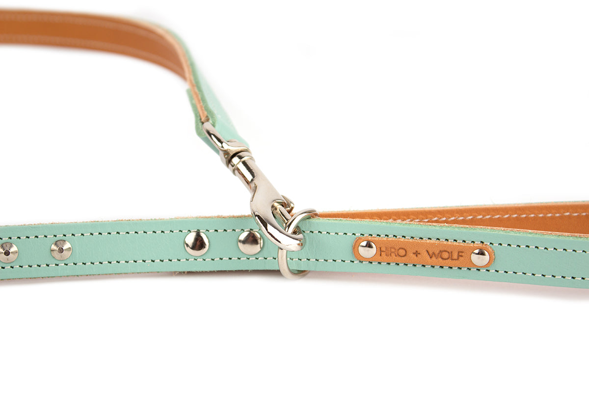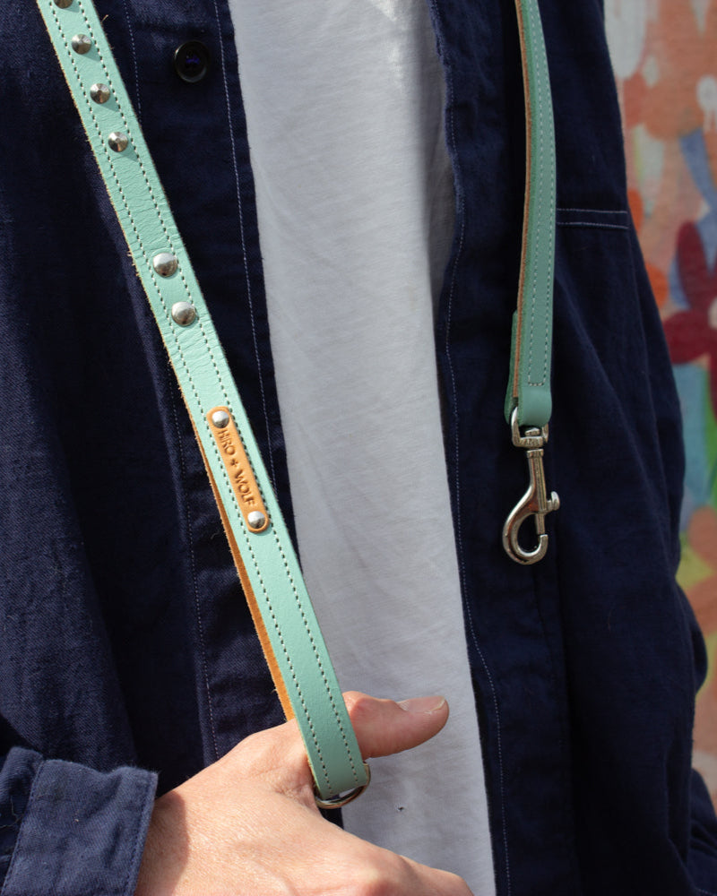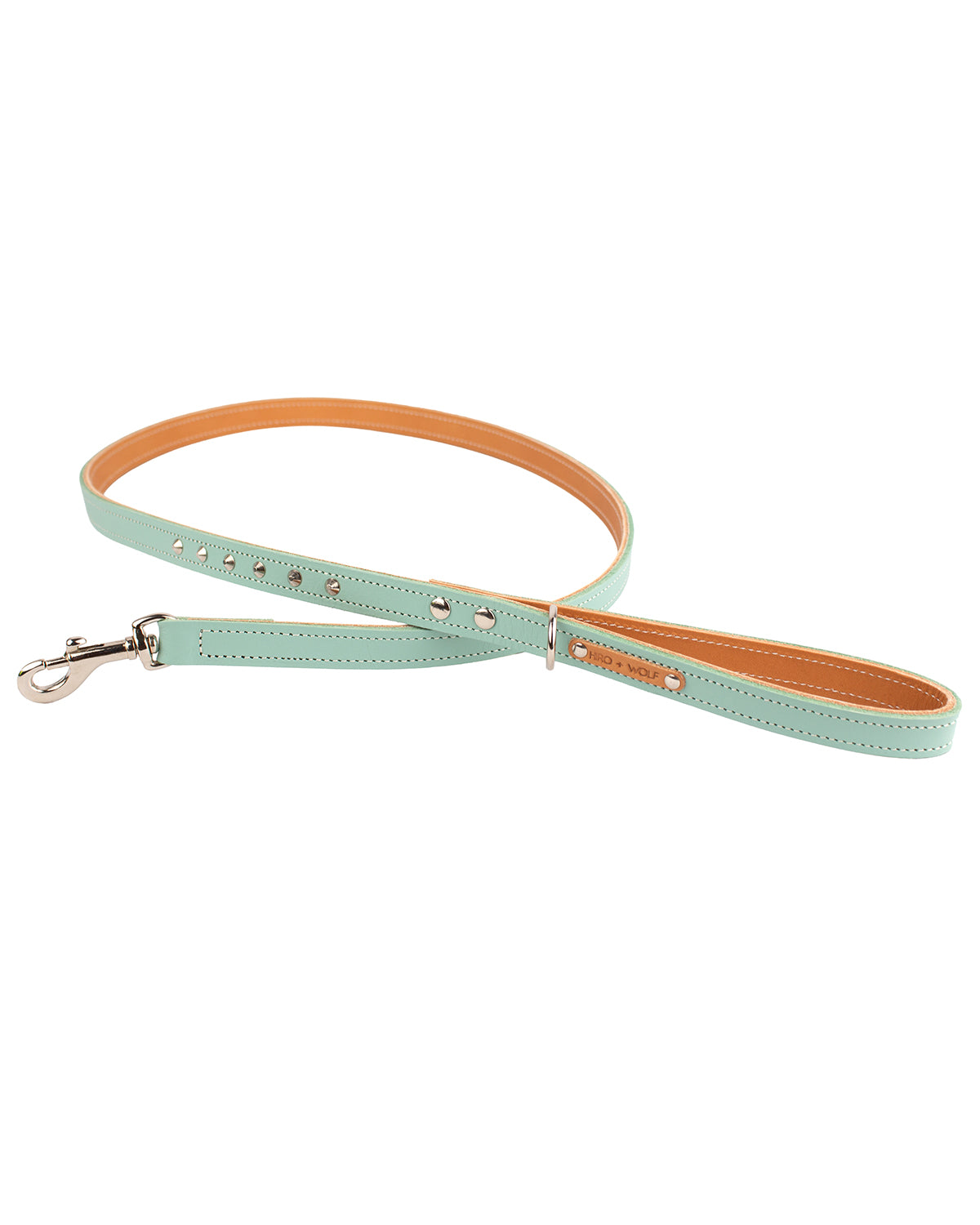 Luxury Leather Duo Tone Dog Lead 'Mint + Tan'