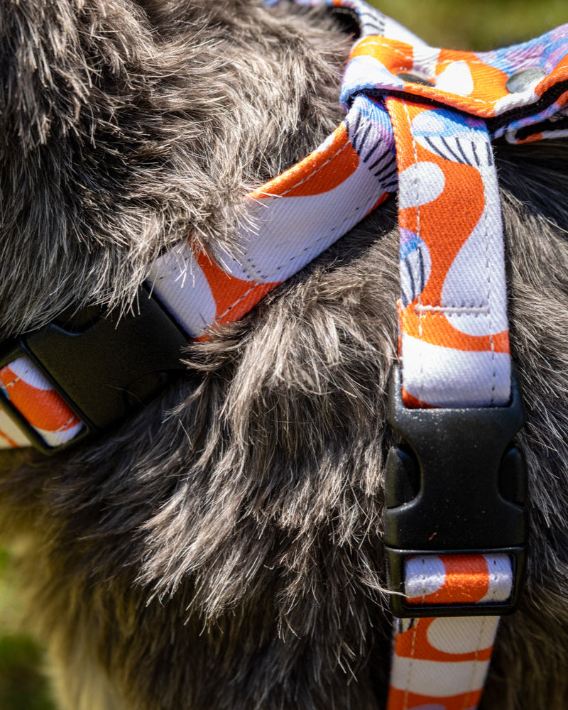 Introducing our Magical Mushrooms deluxe dog harness! This step-in dog harness is fully adjustable for the perfect fit. Designer dog harnesses don’t have to be plain. Our iconic fabric is bound to bring attention to your furry best friend. The easy to clean material is soft and comfortable for your pup, allowing every adventure to be carefree.