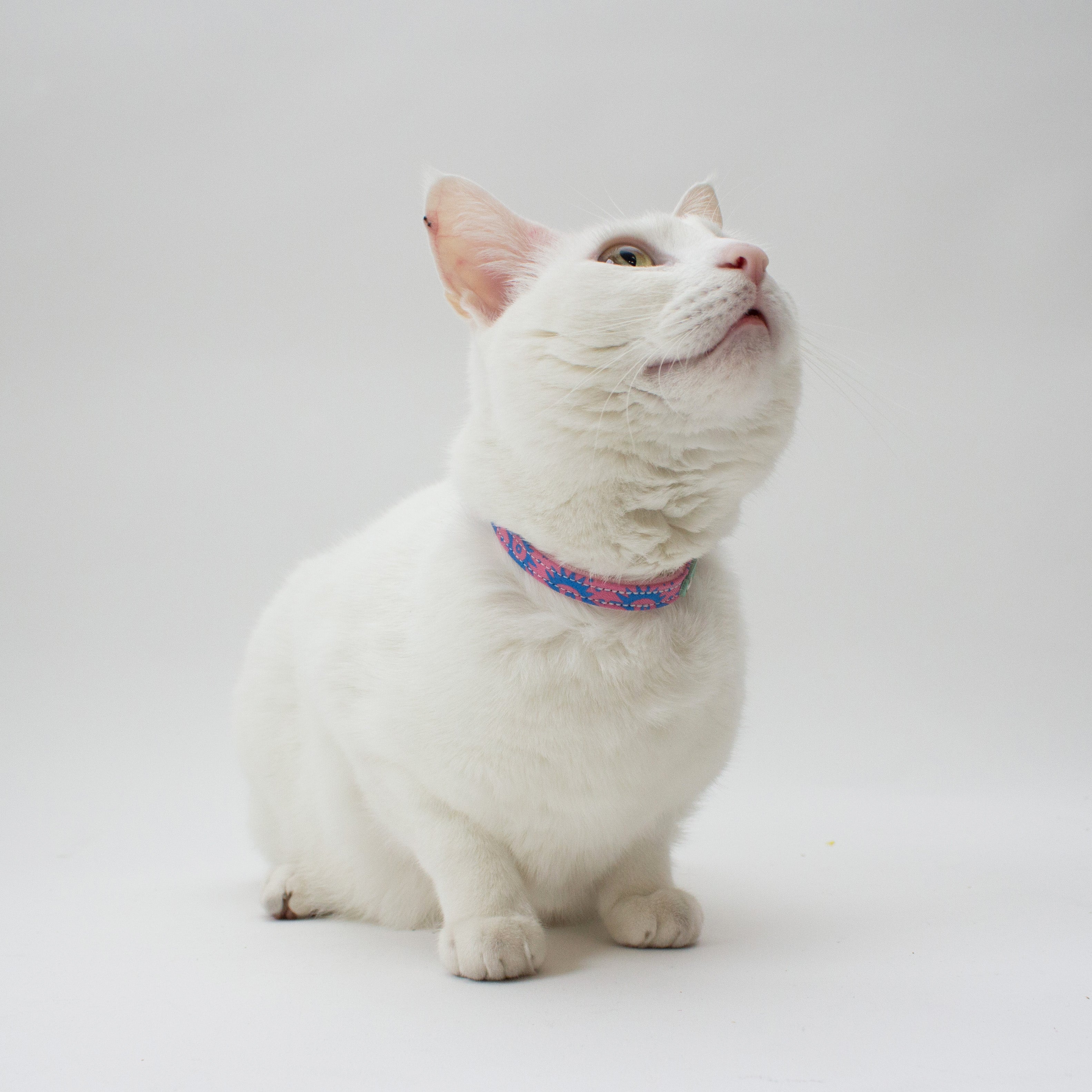 All cat collars are fully adjustable. Have you seen our collection of cat bow ties and bandanas to match?