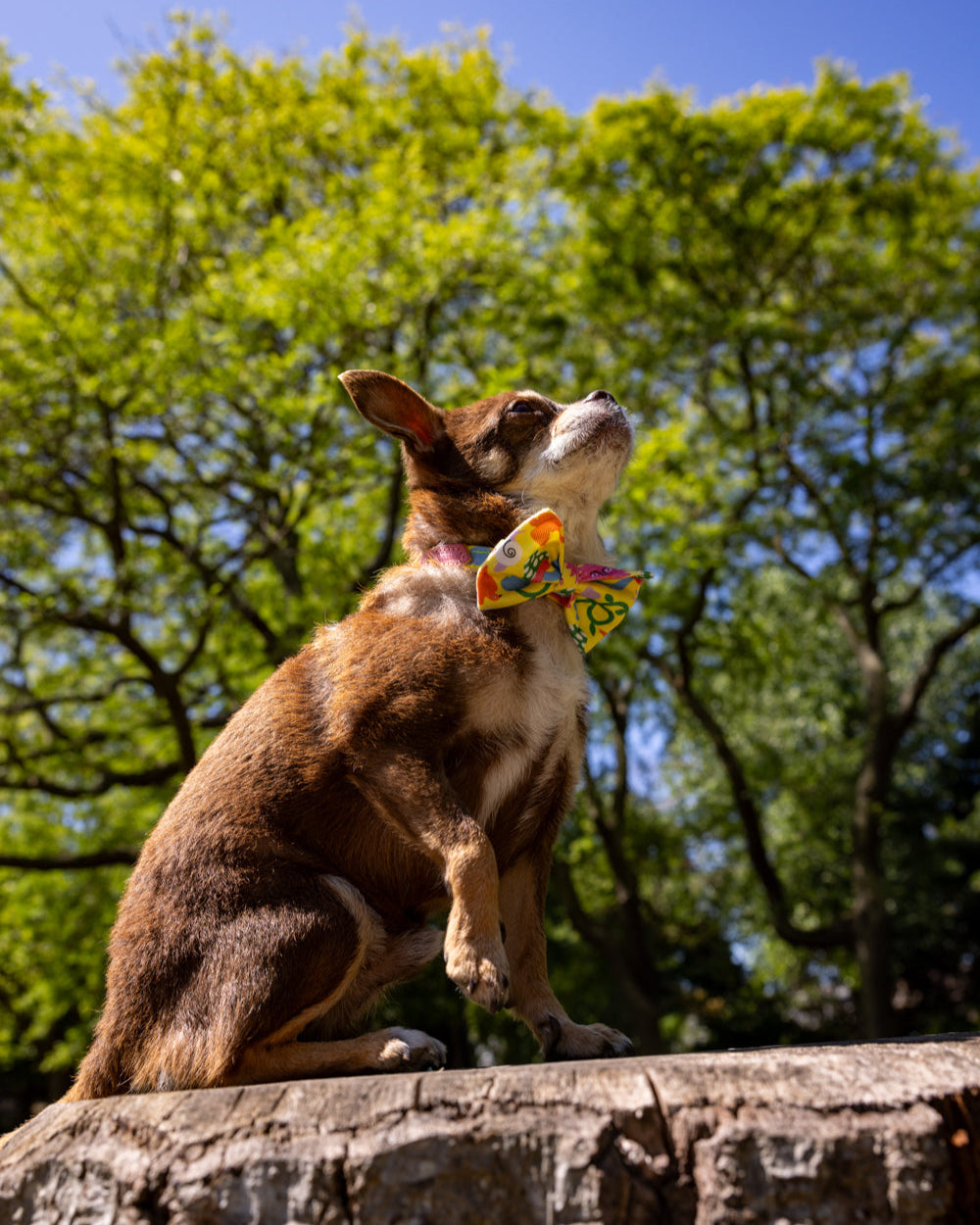 Add a splash of magic to your furry friend’s wardrobe with the Hiro + Wolf Psychedelic Garden dog bow tie, handmade with love and whimsy for every occasion. Crafted in the UK from soft, breathable organic cotton, this charming dog bow tie features an easy slip-on elastic loop, making dressing up your pup both simple and stylish.